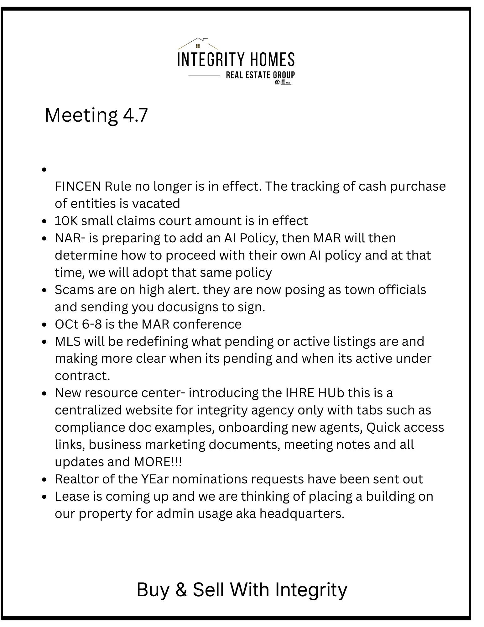 Month Meetings Notes